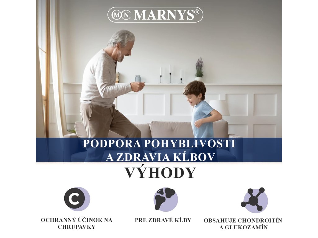 MARNYS® Condrohelp je výživový doplnok s vysokým obsahom chondroitínu a glukozamínu, obohatený o vitamín C, kyselinu hyalurónovú, hydrolyzovaný morský kolagén, meď a mangán. Táto jedinečná kombinácia aktívnych látok podporuje zdravie chrupaviek, šliach a väzov.