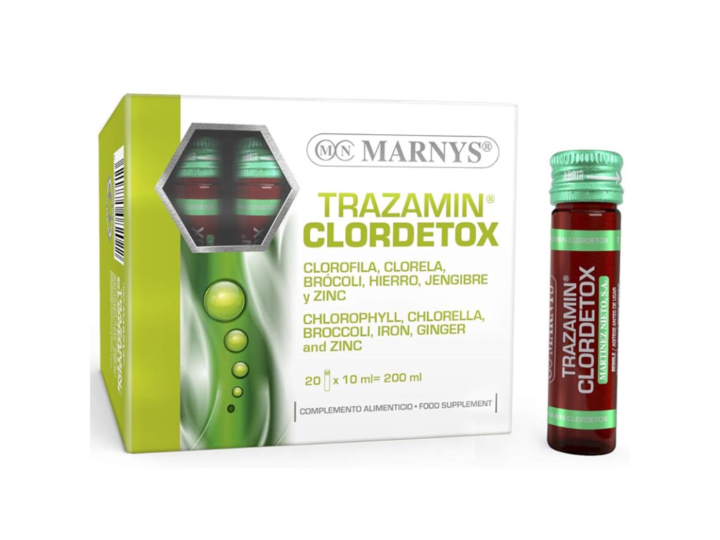 MARNYS® Trazamin Clordetox je výživový doplnok, ktorý kombinuje chlorellu, chlorofyl (lucerna a žihľava), brokolicu, zázvor, železo a zinok – zložky poskytujúce extra okysličenie a antioxidačný účinok.