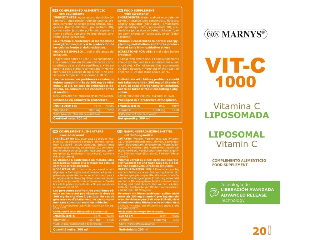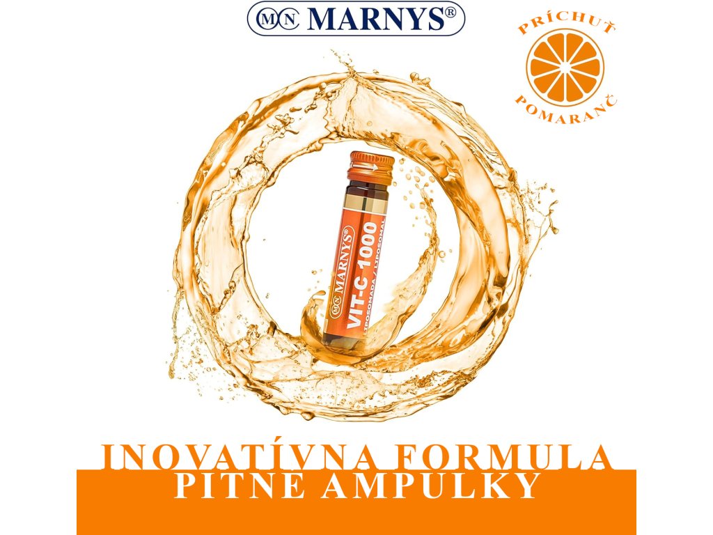 MARNYS® VIT-C 1000 je jedinečný produkt na trhu, ktorý ponúka lipozomálny vitamín C v tekutej ampulke. Lipozomálny vitamín C zabezpečuje vyššiu dostupnosť v krvi v porovnaní so štandardným doplnkom vitamínu C vďaka obsahu fosfolipidov zo slnečnice, ktoré chránia vitamín C pred žalúdočnou kyselinou a zlepšujú jeho vstrebávanie.